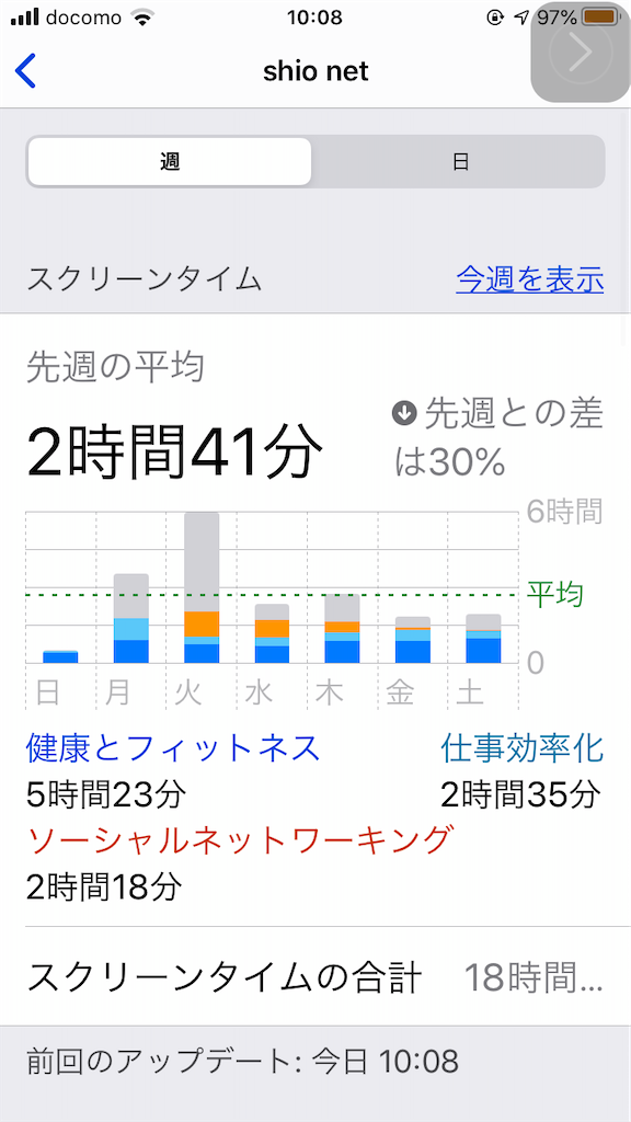 普段のスマホの使用時間の長さがモロバレですが(笑)30%減はなかなか大きいと思います。
